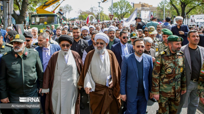 Təbriz Beynəlxalq Qüds Günü yürüşü Fələstinin məzlum və iqtidarlı xalqına dəstək məqsədi ilə Ramazan ayının son cümə günü (5 aprel) keçirildi.