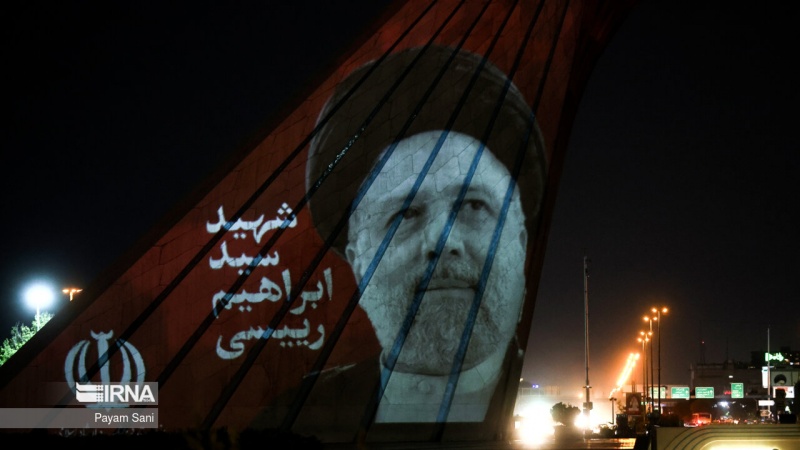 Bazar ertəsi günü axşam (20 may 2024-cü il) Tehrandakı Azadi Qülləsi üzərində xidmət şəhidlərinin xatirəsinə həsr olunmuş video xəritə (təsvir) əks etdirilib.