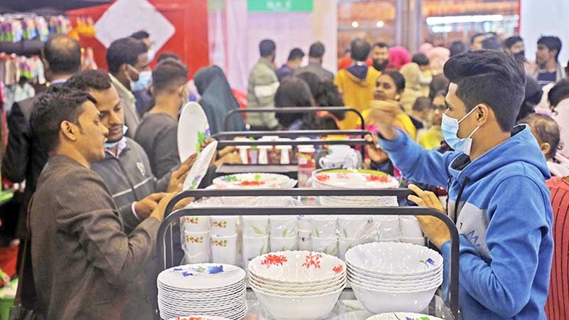 ছুটির দিনে জমজমাট ঢাকা বাণিজ্য মেলা; দাম বেশির অভিযোগ ক্রেতাদের