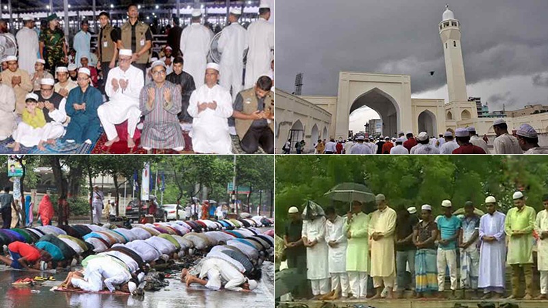 বাংলাদেশে ঈদুল আজহা উদযাপিত: রাজধানীতে বৃষ্টি মাথায় ঈদের জামাতে মুসল্লিরা
