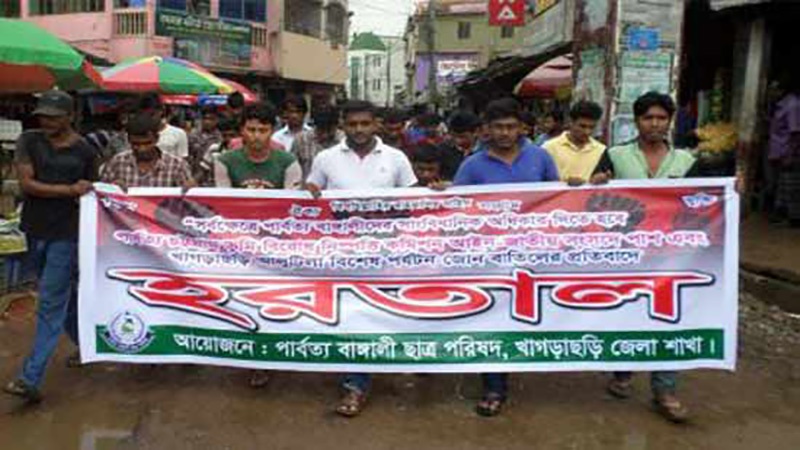 সে প্রক্ষিতের বৃহত্তর পার্বত্য বাঙালি ছাত্র পরিষদ ও পার্বত্য অধিকার ফোরাম তাদের তিনদফা দাবিতে রোববার থেকে টানা ৭২ ঘণ্টার হরতালের ডাক দেয়।