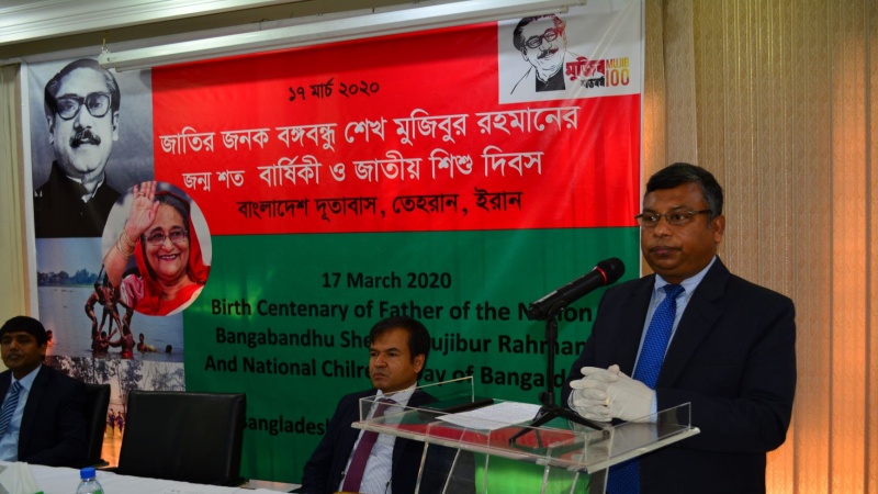 বাংলাদেশের প্রতিষ্ঠাতা প্রেসিডেন্ট বঙ্গবন্ধু শেখ মুজিবুর রহমানের জন্মশতবার্ষিকী (১৭ মার্চ) এবং জাতীয় শিশু দিবস উপলক্ষে তেহরানে অবস্থিত বাংলাদেশ দূতাবাসের আয়োজনে অনুষ্ঠিত আলোচনা সভায় রাষ্ট্রদূত গওসোল আযম সরকার আজ একথা বলেন। দূতাবাস ভবনে আয়োজিত এই দিবসের বিভিন্ন কর্মসূচির মধ্যে ছিল বাংলাদেশের রাষ্ট্রপতি, প্রধানমন্ত্রী, পররাষ্ট্রমন্ত্রী এবং পররাষ্ট্র প্রতিমন্ত্রীর বাণীপাঠ, আলোচনা সভা ও প্রামাণ্যচিত্র প্রদর্শনী। গওসোল আযম সরকারের সভাপতিত্বে বাংলাদেশ দূতাবাস ভবনে আয়োজিত আলোচনা অনুষ্ঠানে বঙ্গবন্ধুর জীবনের বিভিন্ন দিকসহ জাতীয় শিশু দিবসের উপরও আলোচনা করা হয়।