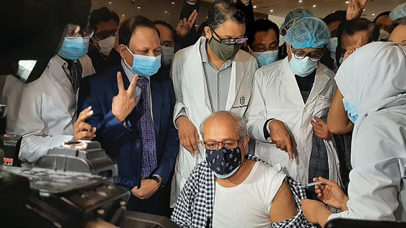 ঢাকার ৫ হাসপাতালে করোনার টিকা কার্যক্রম শুরু: প্রথম নিলেন বিএসএমএমইউ ভিসি