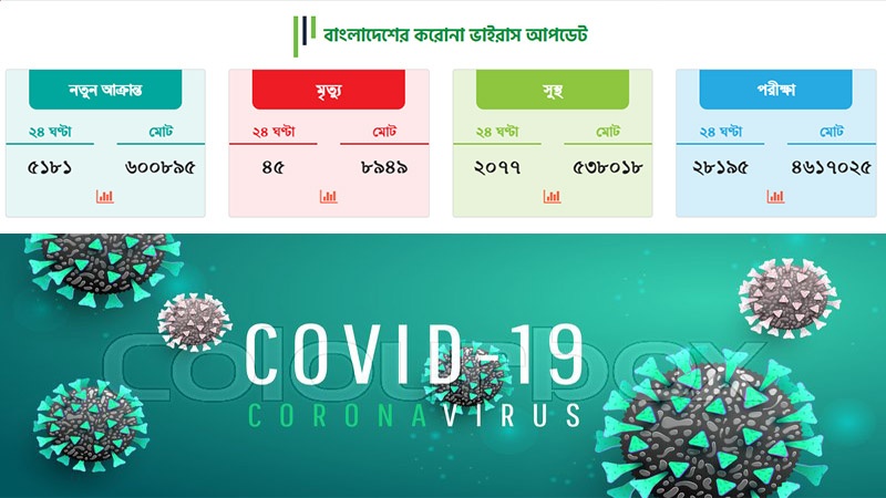 সর্বশেষ ২৪ ঘণ্টার হিসাবে নতুন করে ৫ হাজার ১৮১ জনের দেহে করোনা শনাক্ত হয়েছে, যা দেশে একদিনে সর্বোচ্চ শনাক্তের রেকর্ড। এ নিয়ে দেশে এ পর্যন্ত শনাক্তের সংখ্যা দাঁড়িয়েছে ৬ লাখ ৮৯৫ জন। দেশে ২৪ ঘণ্টায় ২৮ হাজার ১৯৫ জনের নমুনা পরীক্ষা হয়েছে।