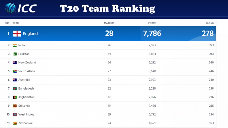 নিউজিল্যান্ডের বিপক্ষে সিরিজটি শুরুর আগে ২৩৪ রেটিং নিয়ে র্যাঙ্কিংয়ের দশ নম্বরে ছিল বাংলাদেশ। কিউইদের বিপক্ষে প্রথম টি-টোয়েন্টি জয়ের পর ৪টি রেটিং পয়েন্ট পেয়েছে বাংলাদেশ। টাইগারদের (২৩৮) চেয়ে ২ রেটিং পয়েন্ট বেশি নিয়ে অস্ট্রেলিয়ার (২৪০) অবস্থান ছয়ে। ২ পয়েন্ট কম নিয়ে অষ্টম স্থানে আফগানিস্তান(২৩৬)।