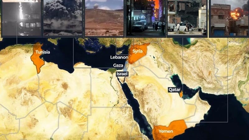 সেসময় ইসরাইলের হামলা শুধু কাতারেই সীমাব্ধ ছিলোনা। মাত্র ৭২ ঘণ্টার মধ্যে আরও অন্তত পাঁচটি দেশে হামলা চালিয়েছে তারা। ফিলিস্তিন, লেবানন, সিরিয়া, তিউনিসিয়া, কাতার এবং ইয়েমেনে হামলা চালানো হয়েছে। সোমবার থেকে গাজায় ইসরাইলের হামলায় অন্তত ১৫০ জন নিহত এবং পাঁচ শতাধিক মানুষ আহত হয়েছেন। এরমধ্যে সোমবার ৬৭ জনের মৃতদেহ গ্রহণ করেছে হাসপাতাল। এছাড়া ৩২০ জনকে আহত অবস্থায় হাসপাতালে ভর্তি করা হয়েছে।