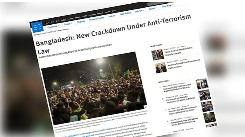 বাংলাদেশে সন্ত্রাসবিরোধী আইনের মাধ্যমে নতুন করে দমন–পীড়ন: এইচআরডব্লিউ