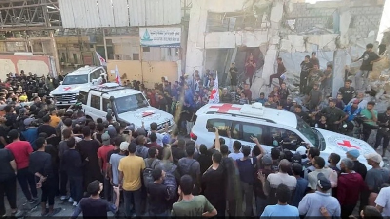 রেডক্রসের গাড়িতে করে ইসরায়েলি জিম্মিদের নিয়ে যাওয়া হচ্ছে