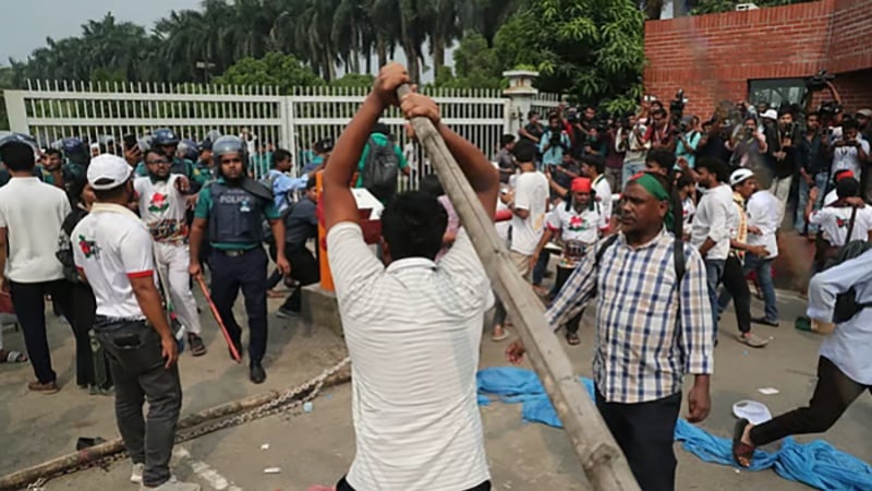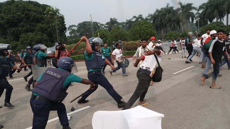 ঢাকা মহানগর পুলিশের (ডিএমপি) যুগ্ম কমিশনার মো. শহীদুল্লাহ আজ বেলা সোয়া দুইটার দিকে বলেন, পুলিশের ওপর ইটপাটকেল নিক্ষেপ ও হামলা করা হয়েছে। পুলিশের পাঁচটি যানবাহন ভাঙচুর করা হয়েছে। তিনি বলেন, পরিস্থিতি নিয়ন্ত্রণে আনতে তাঁরা সাউন্ড গ্রেনেড নিক্ষেপ করেছেন।