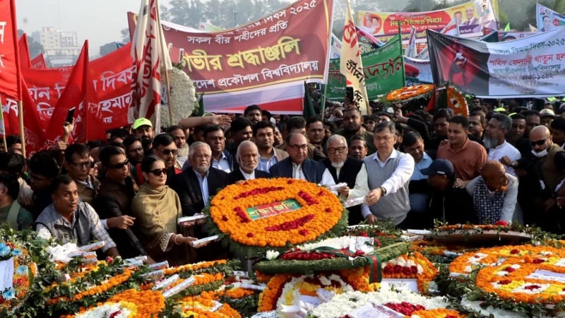 ঢাকার সাভারে জাতীয় স্মৃতিসৌধ–সংলগ্ন বিভিন্ন স্থানে আজকের সকালের শুরুটা ছিল এমনই। সকালের এই দৃশ্যপটের মধ্যেই বেলা বাড়ার সঙ্গে সঙ্গে সকাল সাড়ে ৬টার দিকে স্মৃতিসৌধে প্রবেশ করেন রাষ্ট্রপতি মো. সাহাবুদ্দিন। কিছুক্ষণ পর প্রবেশ করেন অন্তর্বর্তী সরকারের প্রধান উপদেষ্টা অধ্যাপক মুহাম্মদ ইউনূস। দিনের প্রথম প্রহরে জাতীয় স্মৃতিসৌধের বেদিতে পুষ্পস্তবক অর্পণ করেন রাষ্ট্রপতি। পরে প্রধান উপদেষ্টা পুষ্পস্তবক অর্পণ করেন।