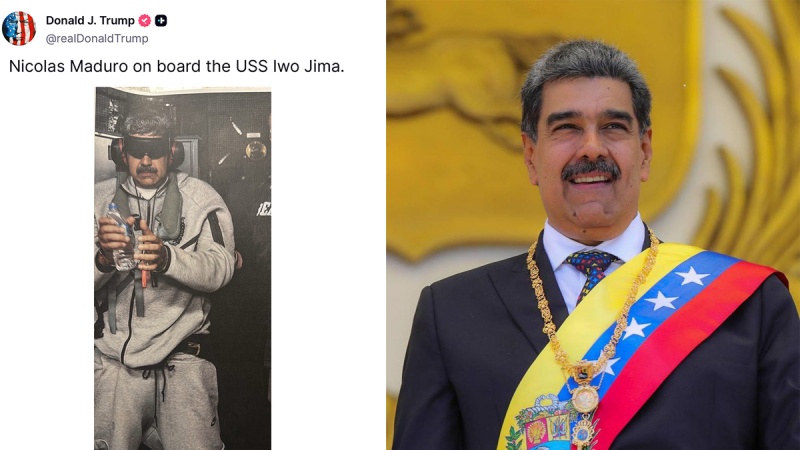 ভেনেজুয়েলার প্রেসিডেন্ট নিকোলাস মাদুরোকে অপহরণ করার পর প্রথমবারের মতো তাঁর ছবি প্রকাশ করেছেন যুক্তরাষ্ট্রের প্রেসিডেন্ট ডোনাল্ড ট্রাম্প। মার্কিন সামরিক অভিযানের মাধ্যমে অপহৃত মাদুরোর এই ছবি প্রকাশ করা হয় ট্রাম্পের সামাজিক যোগাযোগমাধ্যম ট্রুথ সোশ্যালে।