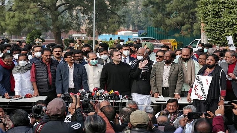 প্রতিবাদ মিছিলে শামিল হয়ে রাজ্যসভা থেকে ১২ জন এমপিকে সাসপেন্ড করা প্রসঙ্গে কংগ্রেসের সাবেক সভাপতি রাহুল গান্ধি এমপি কেন্দ্রীয় সরকারের তীব্র সমালোচনা করে একে বিরোধীদের কণ্ঠরোধ করার চেষ্টা ও গণতন্ত্রের হত্যা বলে মন্তব্য করেন। তিনি বলেন, বিরোধীরা সোচ্চার হওয়ার চেষ্টা করলে সাসপেন্ড করে দেওয়া হচ্ছে। এটা গণতন্ত্রের হত্যা। রাহুল গান্ধি বলেন, বিরোধী এমপিদের সাসপেন্ড করার ঘটনা ১৪ দিন হয়ে গেছে। সংসদে জনগণের বিভিন্ন ইস্যুতে বিরোধীরা বিতর্ক করতে চাইলেও সরকার বিতর্ক করতে দিচ্ছে না। বিরোধী এমপিরা সোচ্চার হলেই তাদেরকে ধমক দিয়ে ভয় দেখিয়ে সাসপেন্ড করে দেওয়া হচ্ছে। এটা গণতন্ত্রকে হত্যা। প্রধানমন্ত্রী সংসদে আসেন না। গণতন্ত্র রক্ষায় এটা কোনও পদ্ধতি নয়।