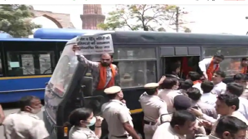 ভারতের রাজধানী দিল্লির ঐতিহাসিক কুতুব মিনারের সামনে হিন্দুত্ববাদী একটি গোষ্ঠী ‘হনুমান চালিসা’পাঠের চেষ্টা করলে পুলিশ তাদেরকে আটক করেছে।