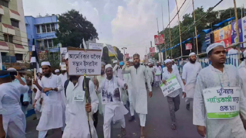 ফিলিস্তিনে হামলার প্রতিবাদে কোলকাতায় ইসরাইল বিরোধী প্রতিবাদ সমাবেশ জমিয়তের