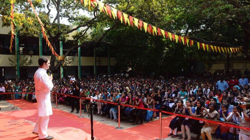 রাহুল গান্ধী আজ ভাষণ দেয়ার সময় হিজাব পরিহিতা এক মুসলিম ছাত্রী তার সঙ্গে মোবাইলে সেলফি তোলার অনুরোধ করলে তিনি ভাষণ থামিয়ে সঙ্গে সঙ্গে তাতে রাজি হন। মঞ্চ থেকে নীচে নেমে এসে হাসিমুখে তার সঙ্গে ছবি তোলেন এবং এসময় অন্য ছাত্রীদের মধ্যেও রাহুলের সঙ্গে ছবি তোলার হিড়িক পড়ে যায়। এ সংক্রান্ত একটি ভিডিও গণমাধ্যমে কার্যত ভাইরাল হয়ে উঠেছে।#