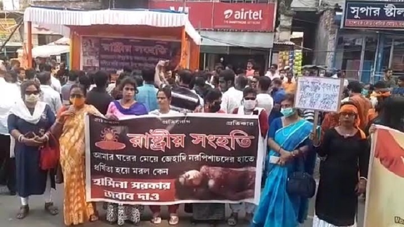বাংলাদেশে সহিংসতার প্রতিবাদে সীমান্তে হিন্দুত্ববাদীদের বিক্ষোভ, হাসিনাকে হুঁশিয়ারি