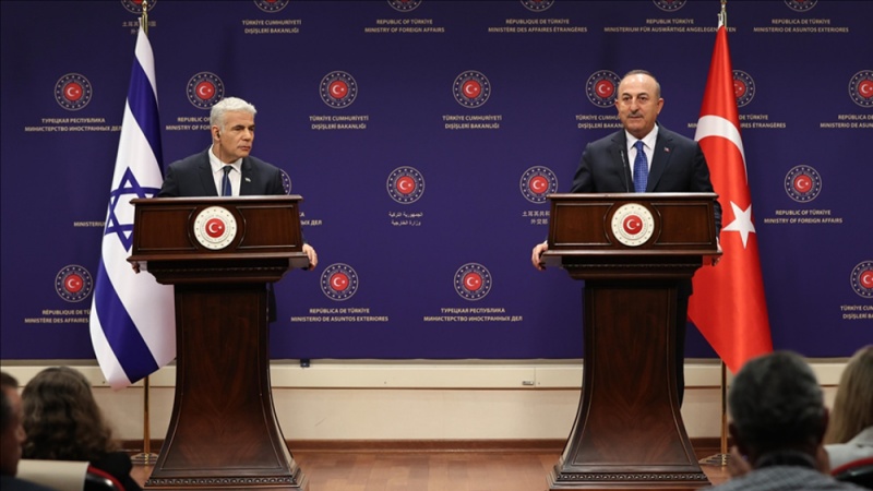 যৌথ সংবাদ সম্মেলনে লাপিদ (বামে) ও চাভুসওগ্লু