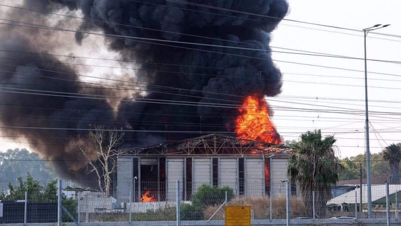 ইহুদিবাদী ইসরাইলের সামরিক সেনা গোয়েন্দা সংস্থার লজিস্টিকাল হেডকোয়ার্টার আগুনে জ্বলছে (মঙ্গলবারের ছবি)