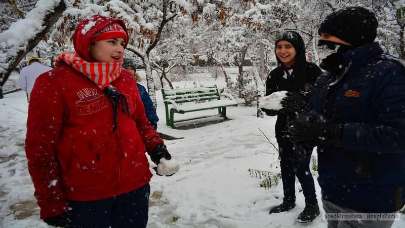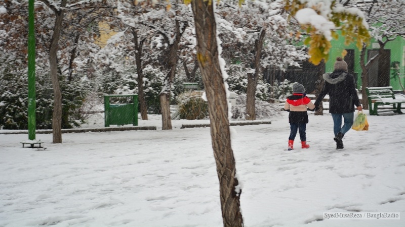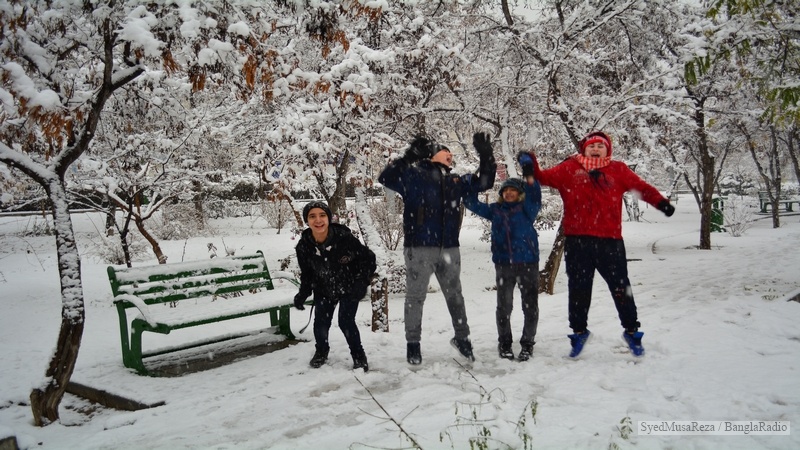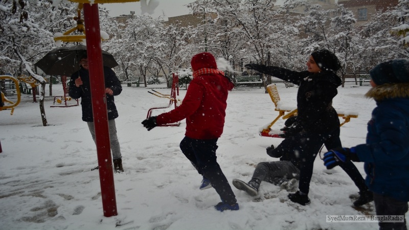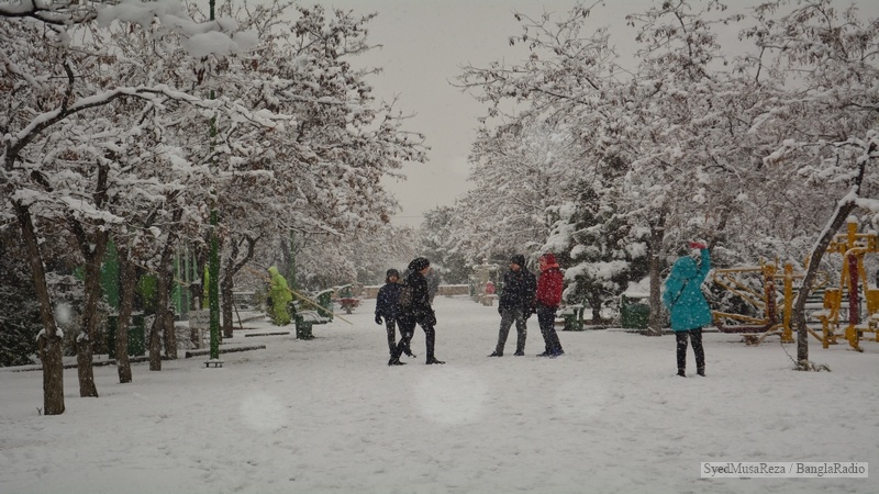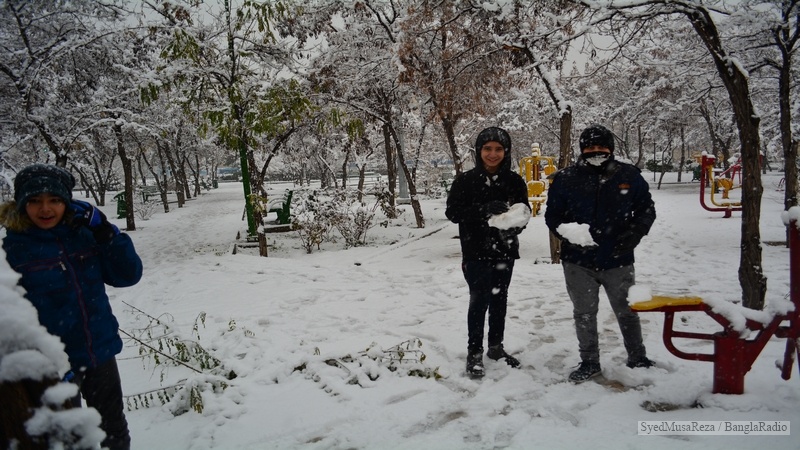 আরও তুষার পড়বে। এমনি আভাস দিয়েছিল আবহাওয়া দফতর। ঘন তুষারপাতের আশংকায় তেহরানের স্কুলগুলো বন্ধ ঘোষণা করা হয় আজ ভোরে। আবহাওয়ার ভবিষ্যৎ বাণী সত্যি হয়েছে। পার্কে তুষার নিয়ে খেলতে এবং তুষার-যুদ্ধ করতে দেখা গেছে শিশু-কিশোরদের।