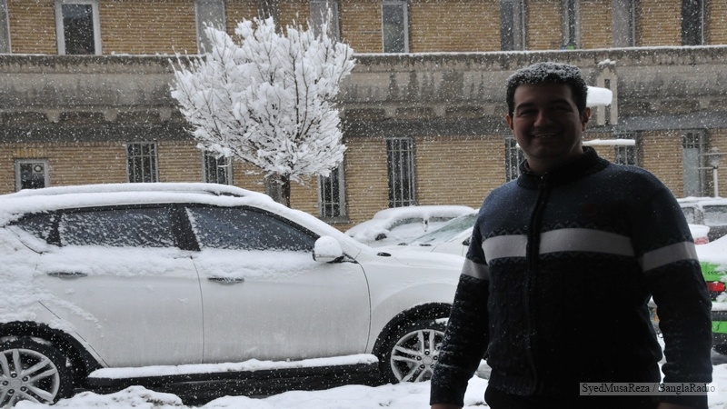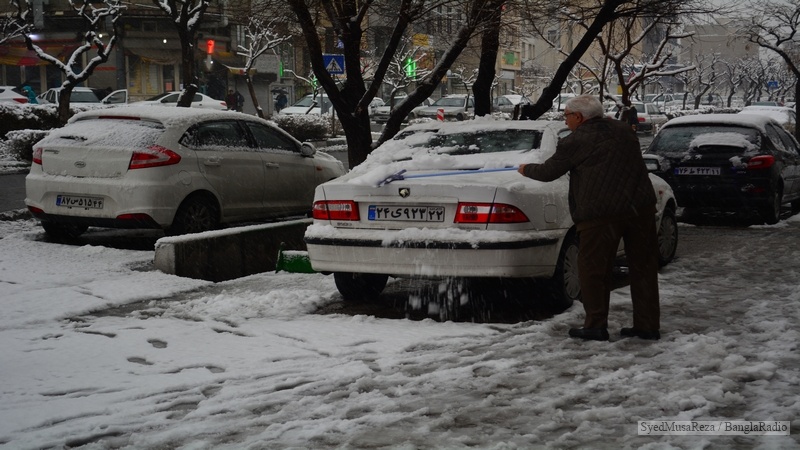 গোটা তেহরান জুড়ে গতরাতে তুষার পড়েছে। তুষার পড়েছে আজ(রোববার) সকালেও। দুপুরের পরও কোনও কোনও এলাকায় তুষারপাত হয়েছে। কিংবা হচ্ছে। সকালে দেখা গেল তুষারের সফেদ চাদরে ঢাকা পড়েছে তেহরান।