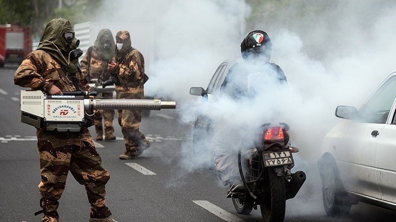 স্বাস্থ্য-কুচকাওয়াজের অংশ হিসেবে তেহরানে করোনা বিধ্বংসী রাসায়নিক ছিটিয়ে দেয়া হচ্ছে