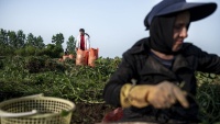 ইরানে বাদাম ক্ষেতের দৃশ্য