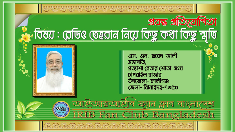 'আইআরআইবি ফ্যান ক্লাব বাংলাদেশ'-এর দ্বিতীয় প্রতিষ্ঠাবার্ষিকী উপলক্ষে বিশেষ প্রবন্ধ প্রতিযোগিতার আয়োজন করা হয়েছিল। ওই প্রতিযোগিতায় অংশগ্রহণকারীদের মধ্যে বিজয়ী হয়েছেন ৯ জন। বিজয়ীদের পাশাপাশি অংশগ্রহণকারীদের গুরুত্বপূর্ণ লেখাগুলো পার্সটুডেতে ধারাবাহিকভাবে প্রকাশ করা হচ্ছে। আজ প্রকাশিত হলো ঝিনাইদহ জেলার কালীগঞ্জের সিনিয়র শ্রোতা এস এম ছবেদ আলীর লেখা।