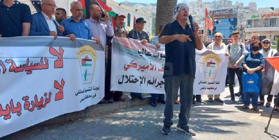 মার্কিন প্রেসিডেন্ট জো বাইডেন ফিলিস্তিনি স্বশাসন কর্তৃপক্ষের প্রেসিডেন্ট মাহমুদ আব্বাসের সঙ্গে অধিকৃত পশ্চিম তীরে বৈঠক করেছেন। এদিকে, বাইডেনের ফিলিস্তিনি ভূখণ্ডে সফরের প্রতিবাদে বহু মানুষ বিক্ষোভ করেছেন।