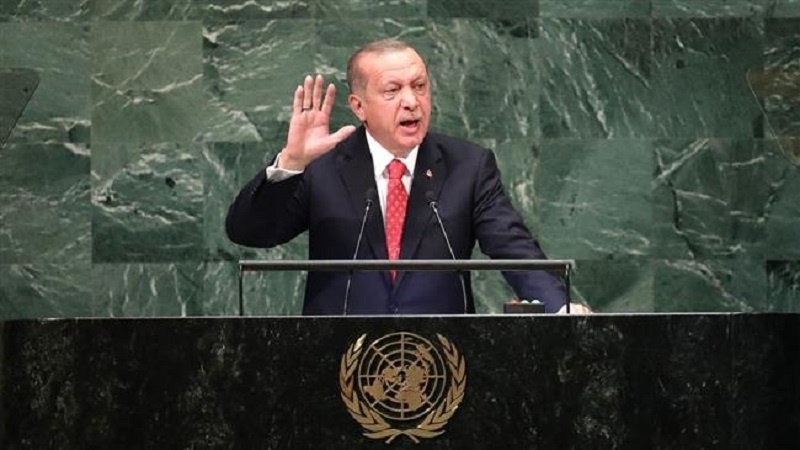 জাতিসংঘ সাধারণ পরিষদে দেয়া ভাষেণ এরদোগান মাার্কিন সরকারের কঠোর সমালোচনা করেছেন। তিনি বলেন, “নিষেধাজ্ঞাকে অস্ত্র হিসেবে ব্যবহার করছে আমেরিকা; মার্কিন সরকারের এসব পদক্ষেপের মুখে আমরা চুপ থাকতে পারি না।”#