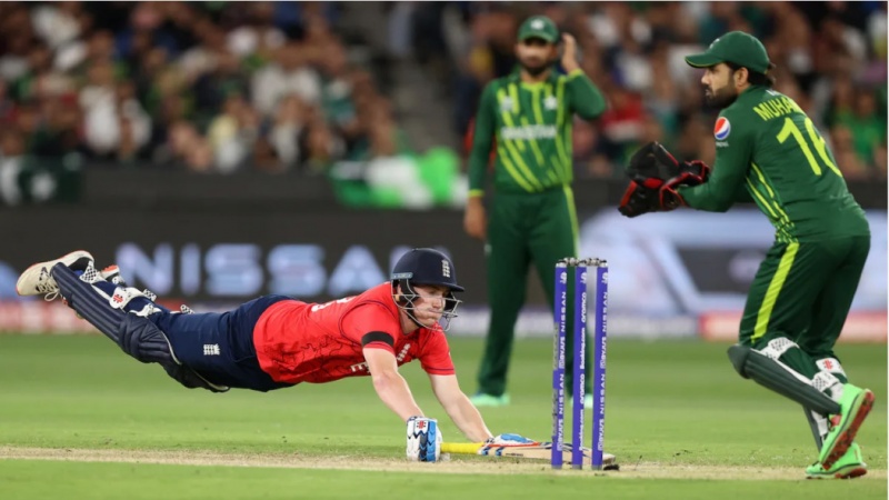 রান তাড়ায় ইংল্যান্ডের শুরুটাও ভালো হয়নি। ইনিংসের প্রথম ওভারেই উড়তে থাকা অ্যালেক্স হেলসে হারায় ইংল্যান্ড। এরপর মেরে খেলতে গিয়ে উইকেট উপহার দেন ফিল সল্ট। থিতু হয়ে টিকতে পারেননি জস বাটলারও। ২৬ রানে তাকে মাঠ ছাড়া করেন হারিস রউফ।