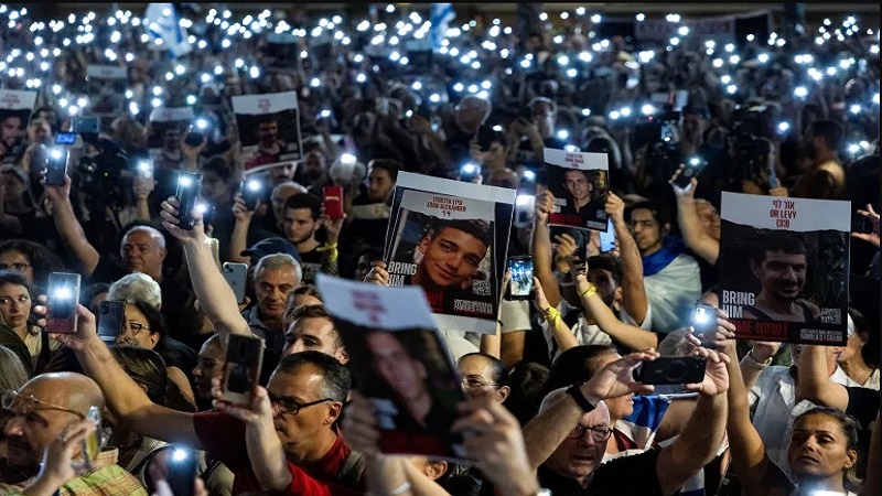 হামাসের হাতে আটক বন্দিদের মুক্তির জন্য তেল আবিবে ইসরাইলিদের বিক্ষোভ।