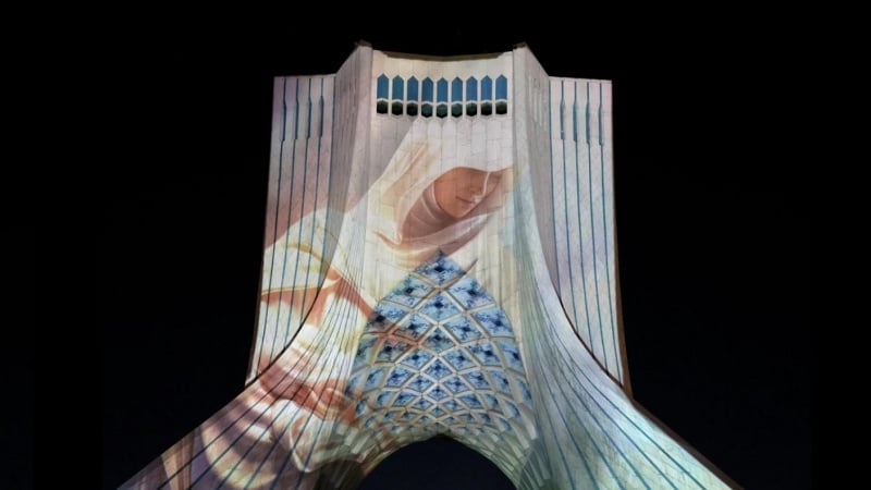 হযরত ফাতিমা জাহরা (সা. আ.)-এর জন্মবার্ষিকী উপলক্ষে তেহরানের আজাদি টাওয়ারে একজন মায়ের মুখ