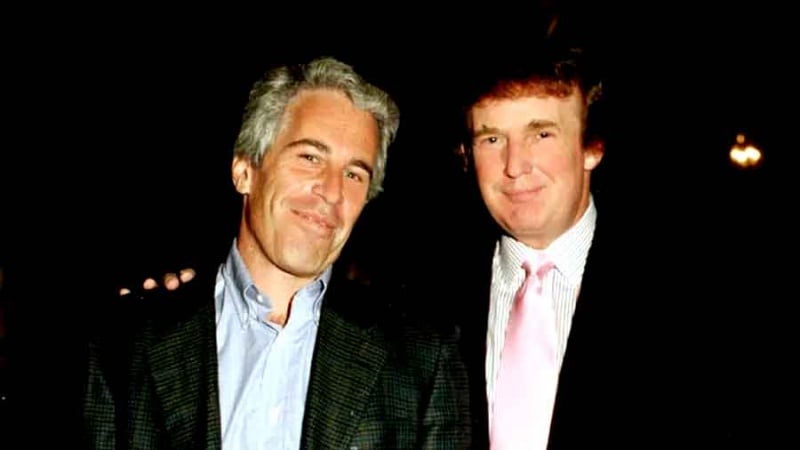 ডোনাল্ড ট্রাম্প (ডানে) জেফ্রি এপস্টাইন (বামে)