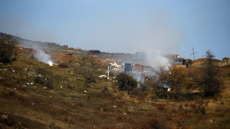 নাগার্নো-কারাবাখের ফ্রন্টলাইনে গোলাবর্ষণের পর ধোঁয়া উড়ছে