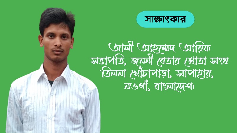 বন্ধুরা, অনুষ্ঠানের এ পর্যায়ে রয়েছে বাংলাদেশের নওগাঁর শ্রোতা আলী আহম্মেদ আরিফের সাক্ষাৎকার।
