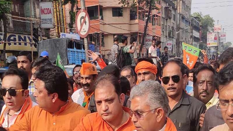 নির্ধারিত সূচি অনুযায়ী বুধবার সকালে বিজেপির রাজ্য দপ্তরের সামনে ভিড় জমান বিজেপি কর্মী সমর্থকরা। মিছিলে নেতৃত্ব দেন বিজেপির রাজ্য সভাপতি দিলীপ ঘোষ। এছাড়াও রয়েছেন রাজু বন্দ্যোপাধ্যায়, সৌরভ শিকদার, দেবজিৎ সরকারের মতো নেতারা।