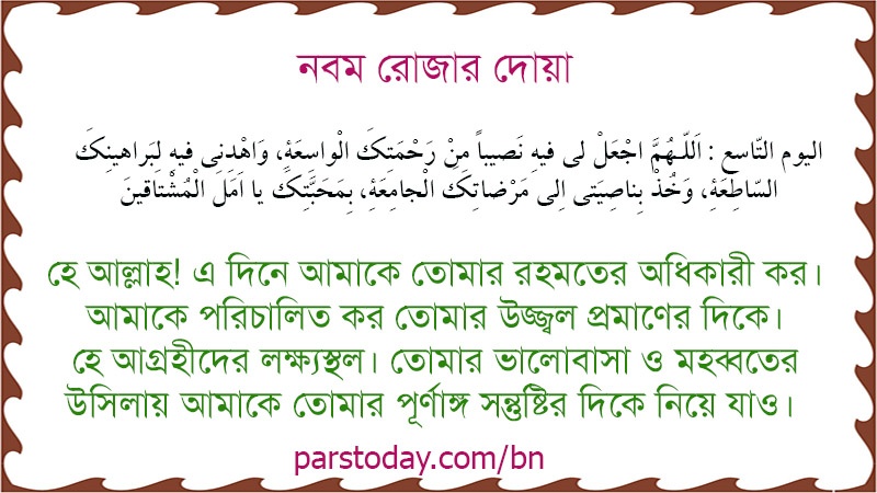 ইমাম সাজ্জাদ তাঁর এ দোয়ার প্রথমেই বলছেন, মহান আল্লাহর প্রশংসা করছি এ জন্য যে তিনি আমাদেরকে তাঁর প্রশংসাকারীদের মধ্যে রেখেছেন। আমরা মহান আল্লাহর নেয়ামতগুলো সম্পর্কে গাফেল নই। এসব নেয়ামতের জন্য আমরা আল্লাহর প্রশংসা করছি ও তাঁর প্রতি কৃতজ্ঞতা প্রকাশ করছি। মহান আল্লাহ যদি নানা সুযোগ বা পথগুলো খুলে না দিতেন তাহলে আমরা তাঁর প্রশংসাকারী হতে পারতাম না। এরপর ইমাম সাজ্জাদ এ দোয়ায় বলছেন, আল্লাহর শোকর করছি এ জন্য যে তিনি আমাদেরকে তাঁর দিকে যাবার, পূর্ণতা পাবার এবং দূরদৃষ্টি ও বিচক্ষণতার মহা-খনিতে যাওয়ার অন্যতম পথ তথা রমজান যা কিনা তাঁরই মাস- তা দান করেছেন।