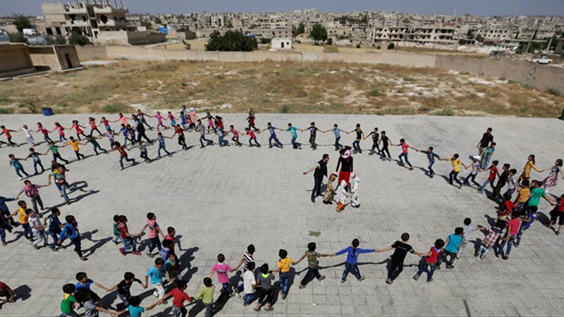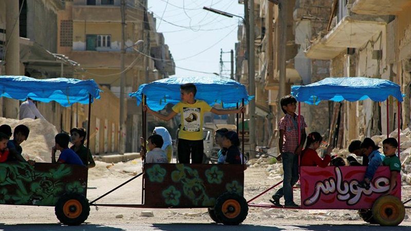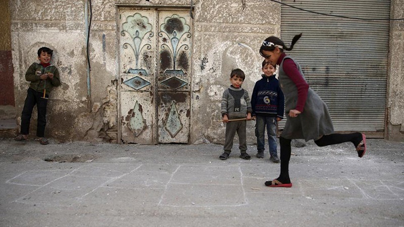 Sirijska djeca igraju se među ruševinama nastalim u razornom građanskom ratu.