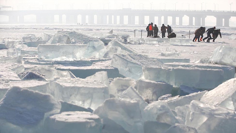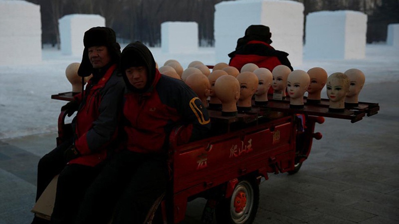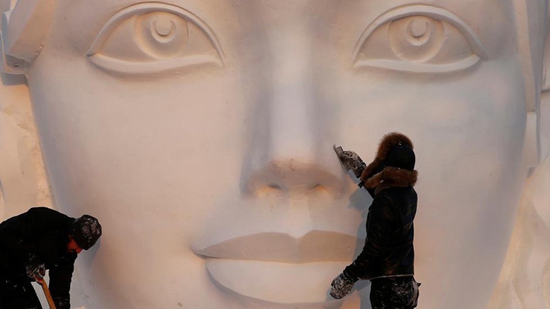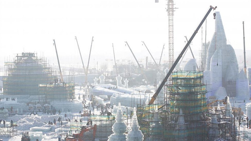 Tokom održavanja Međunarodnog festivala snijega i leda Harbein, na sjeveru Kine, umjetnici koji rade u ledu stvorili su ledeni grad.