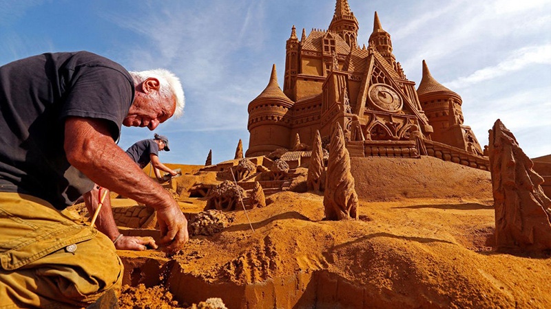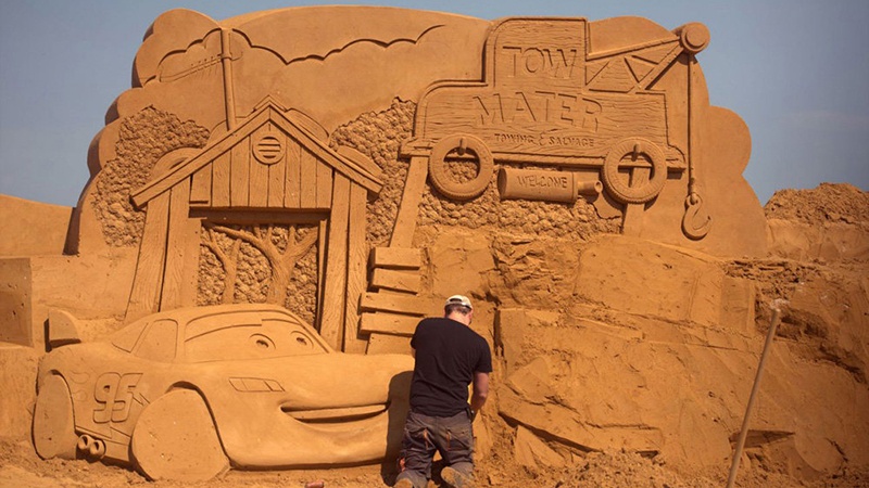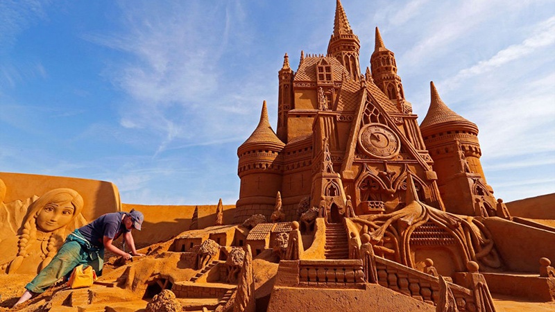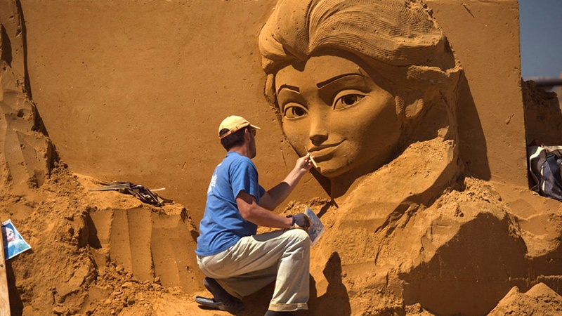 Na izložbi pješčanih figura u gradu Ostend u Belgiji umjetnici su od pijeska napravili skulpture poznatih ličnosti iz crtića.