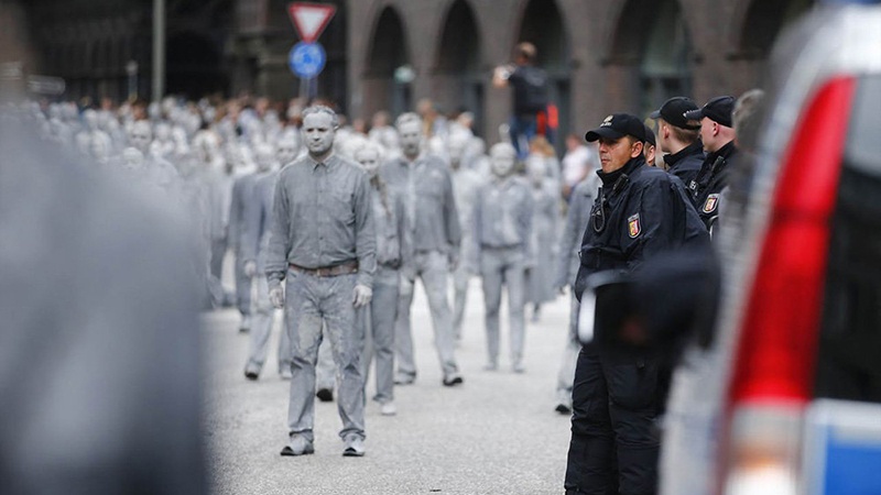 Stotine prosvjednika protiv kapitalizma su, preodjeveni u zombije, protestirali na ulicama Hamburga protiv samita G20