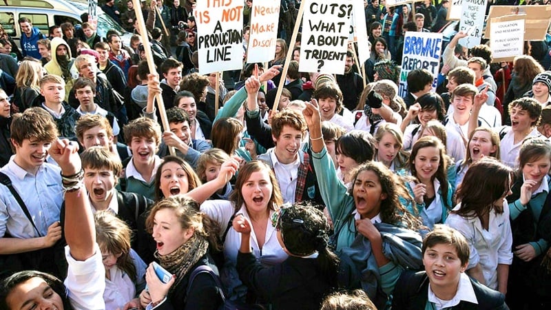 Demonstranti su zahtijevali od britanske vlade da umjesto smanjenja budžeta za visoko obvrazovanje smanji se budžet za proizvodnju nuklearnog oružja. Studenti i profesori uzvikivali su slogane protiv politike štednje, te zbog izazivanja većeg pritiska na obrazovni sektor i smanjenje budžeta za isti. Izbili su neredi u Londonu kada je oko pedeset hiljada studenata i profesora protestovalo u Vestminsteru protiv planova konzervativno-liberalne vlade da poveća cijene školarina, smanji finansiranje Univerziteta za 40 odsto u Engleskoj i ukine vladine stipendije. Stipendije finansirane iz javnih prihoda u Engleskoj su praktično ukinute novim vladinim odlukama osim za pojedine prirodne nauke i matematiku. Studenti i profesori su doputovali u London na demonstracije iz raznih dijelova Velike Britanije, a oko dvije hiljade studenata je došlo iz Velsa. U Londonu je došlo do sukoba sa policiojom. Letjele su kamenice ka policajcima. Mediji javljajui da je povrijeđeno četrnaest osoba, ali da niko nije zadobio teže povrede. Gradonačelnik Londona Boris Džonson izjavio je da je užasnut da je mala manjina zloubotrijebila pravo da protestuje. Ranije 2010.godine na desetine hiljada studenata i predavača marširali su centrom grada protestvujući protiv planova da im se poveća cijena upisa na fakultete za tri puta.Policija je pokrenula hitnu istragu, a u neredima je bilo više povrijeđenih, među kojima su bila sedmorica policajaca.Šteta je bila procjenjena na više desetina hiljada funti, a 35 osoba je privedeno.Komesar Metropolitan policije, Sir Paul Stephenson, izjavio je da su neredi "sramota za London i za nas"."Mislim da imamo puno pitanja da sebi postavimo. Ovaj nivo nasilja bio je sasvim neočekivan i iz ovoga trebamo naučiti lekcije", kazao je i obećao detaljnu istragu. Ovo su dosada bile najveće ulične demonstracije od kada je britanska vlada prošlog mjeseca najavila smanjenje javnih troškova za oko stotinu i trideset milijardi dolara.
