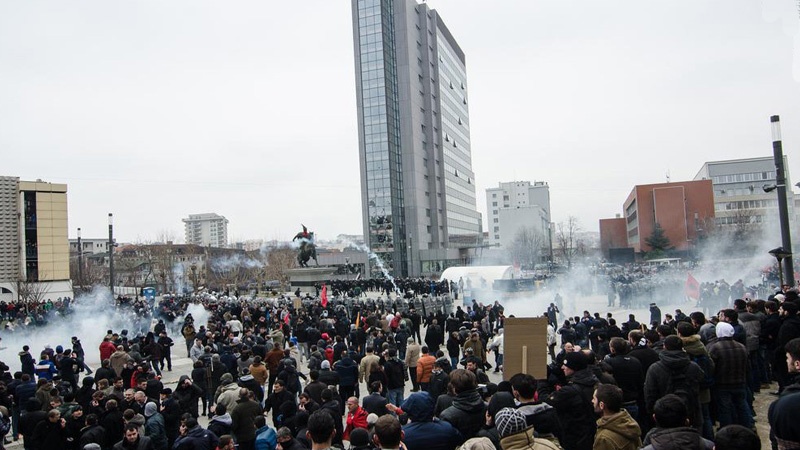 Prema izvještaju Međunarodne televizije Sahar, žestoki okršaji policije i demonstranata u centru Prištine desili su se nešto iza 16 sati. Prethodno je policija suzavcem rastjerivala demonstrante iz centra grada.