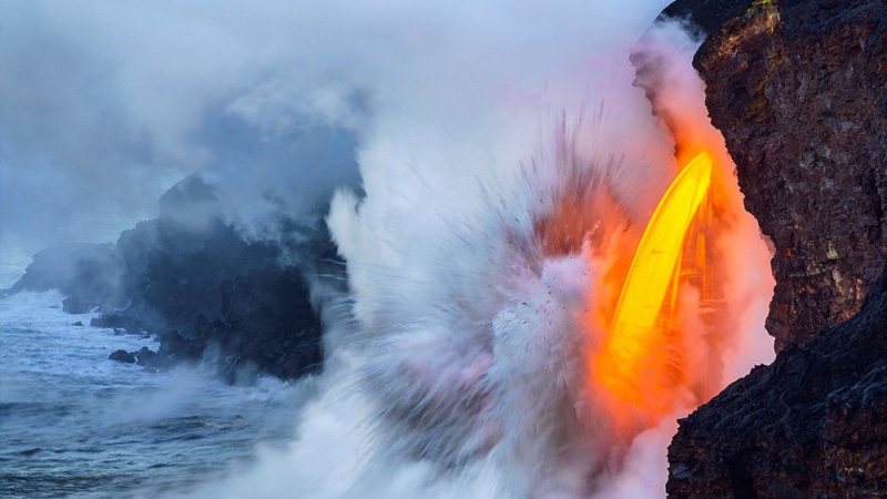 Ovu prelijepu fotografiju snimio je jedan hrabri fotograf John Cornford, s udaljenosti nekoliko metara od vulkana u trenutku erupcije, na Havajima.