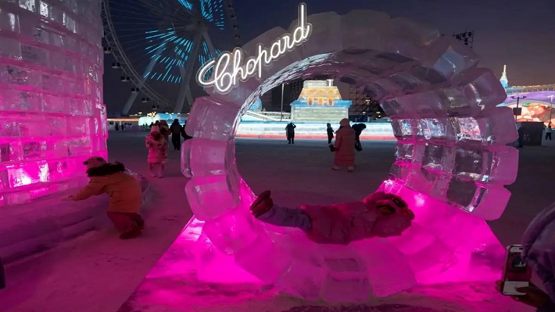 همزمان، خانواده‌هایی از نقاط مختلف چین و دیگر مناطق به این شهر سفر کردند تا از تماشای مجسمه‌های عظیم یخی لذت ببرند و برخی بازدیدکنندگان نیز با شنا در آب‌های یخ‌زده، سرمای شدید هوا را به جان خریدند.