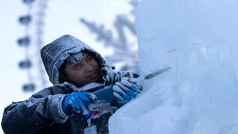 مجسمه‌سازان آخر هفته گذشته برای برگزاری جشنواره سالانه یخ و برف، در شهر بسیار سرد هاربین در شمال چین گرد هم آمدند.