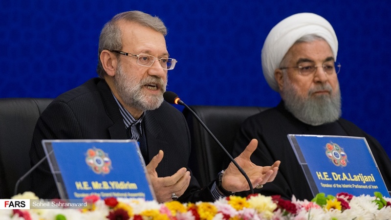 Laridschani erinnerte dann daran, dass die USA und einige weitere Länder, die die Terrorismusbekämpfung für sich reklamieren, den Terrorismus in Wahrheit instrumentalisieren. Dieses Verhalten habe die Länder der Region dazu veranlasst, an den Aufbau eines regionalen Systems zur Terrorismusbekämpfung zu denken, wofür die Zusammenarbeit zwischen Iran, Russland und der Türkei in Syrien ein klares Bespiel ist, die auch zum großen Teil erfolgreich gewesen sei, unterstrich Irans Parlamentspräsident.