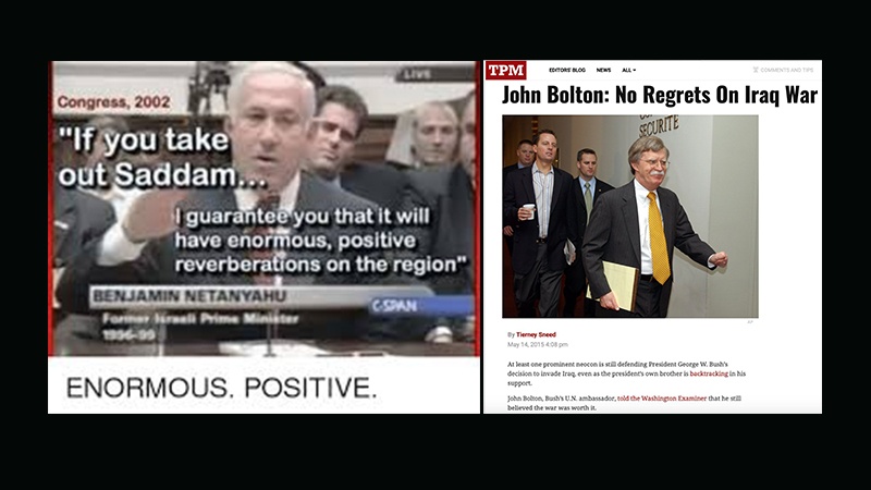 Mohammad Javad Zarif hat in diesem Tweet, Dokumente über einen Artikel von John Bolton, derzeit nationaler Sicherheitsberater der USA, bezüglich des Ausstiegs der USA aus dem Atomabkommen -JCPOA-, schon vor Abschluß dieses Vertrages, sowie für die Bezeugung Benjamin Netanjahus, des Ministerpräsidenten des israelischen Regimes, über irakische Massenvernichtungswaffen vor dem US-Kongress im Jahr 2002, dargelegt.