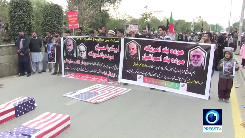 Bei einer von Studenten organisierten Demonstration gehen tausende Pakistaner auf die Straße, um an den Zeremonien zum Märtyrertod von Generalleutnant Qassem Soleimani, dem Kommandanten der Al-Quds Brigade der iranischen Revolutionsgarde teilzunehmen.