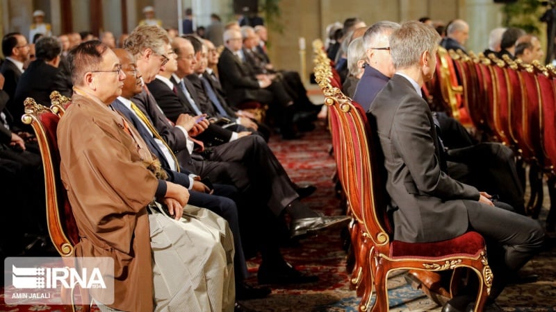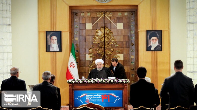Bei seiner Zusammenkunft mit ausländischen Botschaftern und Diplomaten sowie Vertretern in Teheran ansäßiger internationaler Organisationen am Montag, im Vorfeld des Jahrestages des Sieges der Islamischen Revolution, sagte der iranische Präsident: "Diejenigen, die mit der Geschichte, Zivilisation und Kultur Irans vertraut sind, wissen, dass die Iraner gegenüber Gewalt, Schikane, unrechtmäßigen Beschuldigungen und Druck, niemals klein beigeben."